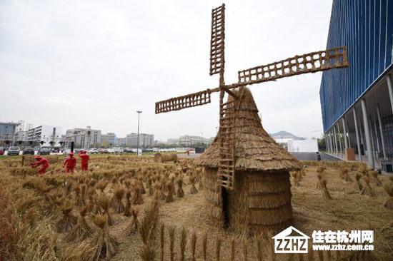 整齐的稻茬儿、大大小小的稻草垛、风车、劳动者、以及投影在金色稻田中的小镇建筑……原野的质璞、都市的繁美交汇融合,勾勒出一幅田园都市的梦境,置身其中,涤滤着人心,美好而纯净。